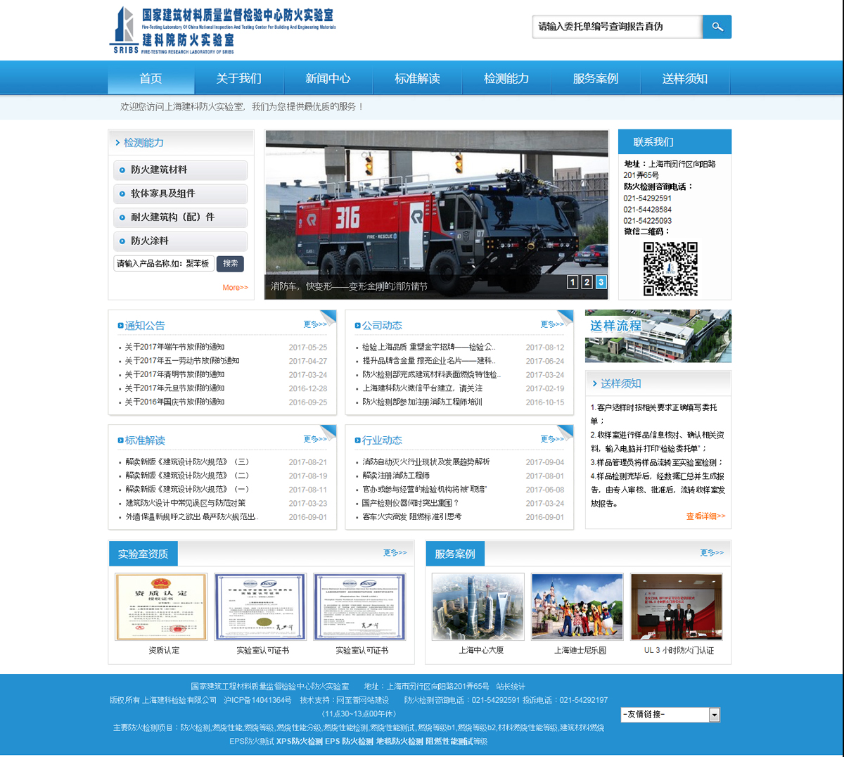 上海建科檢驗有限公司防火實驗室