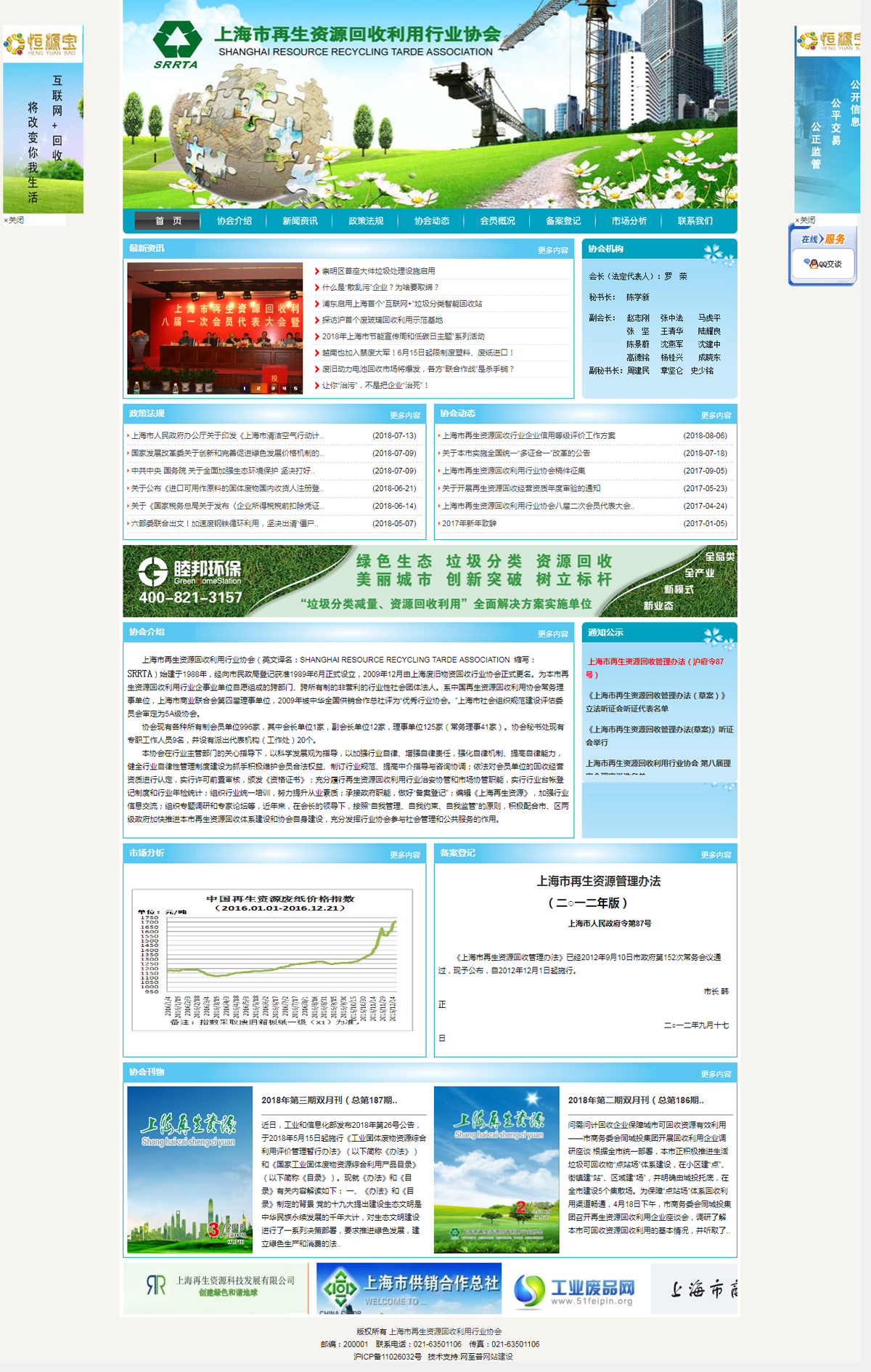 上海市再生資源回收利用行業(yè)協(xié)會(huì)(英文譯名: SHANGHAI RESOURCE RECYCLING ASSOCIATION 縮寫: SRRA)始建于1988年,經(jīng)向市民政局登記獲準(zhǔn)1989年6月正式設(shè)立,2009年12月由上海廢舊物資回收行業(yè)協(xié)會(huì)正式更名。為本市再生資源回收利用行業(yè)企事業(yè)單位自愿組成的跨部門、跨所有制的非營利的行業(yè)性社會(huì)團(tuán)體法人。
